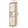 Kvalitní sektorový nábytek JIM 5 splňuje soudobé nároky na zařízení obytných prostorů. Vyznačuje se svislou orientací vzoru dekoru. Nábytek vyrábíme z LTD desek tl. 18 mm vysoké kvality od renomovaných výrobců. Na všech významných hranách je kvalitní 2 mm ABS hrana odolná proti poškození. Hrany jsou lepeny polyuretanovým vlhku odolným lepidlem Pohyb zásuvek je usnadněn pomocí kovových kolečkových výsuvů se zarážkou, která zamezuje nechtěnému vypadnutí zásuvky. K zavěšení dveří jsou použity celokovové závěsy s tlumením. Krycí a obkladové desky slouží k překrytí několika skříněk najednou, k vytváření ramp nebo obkladů stěn.