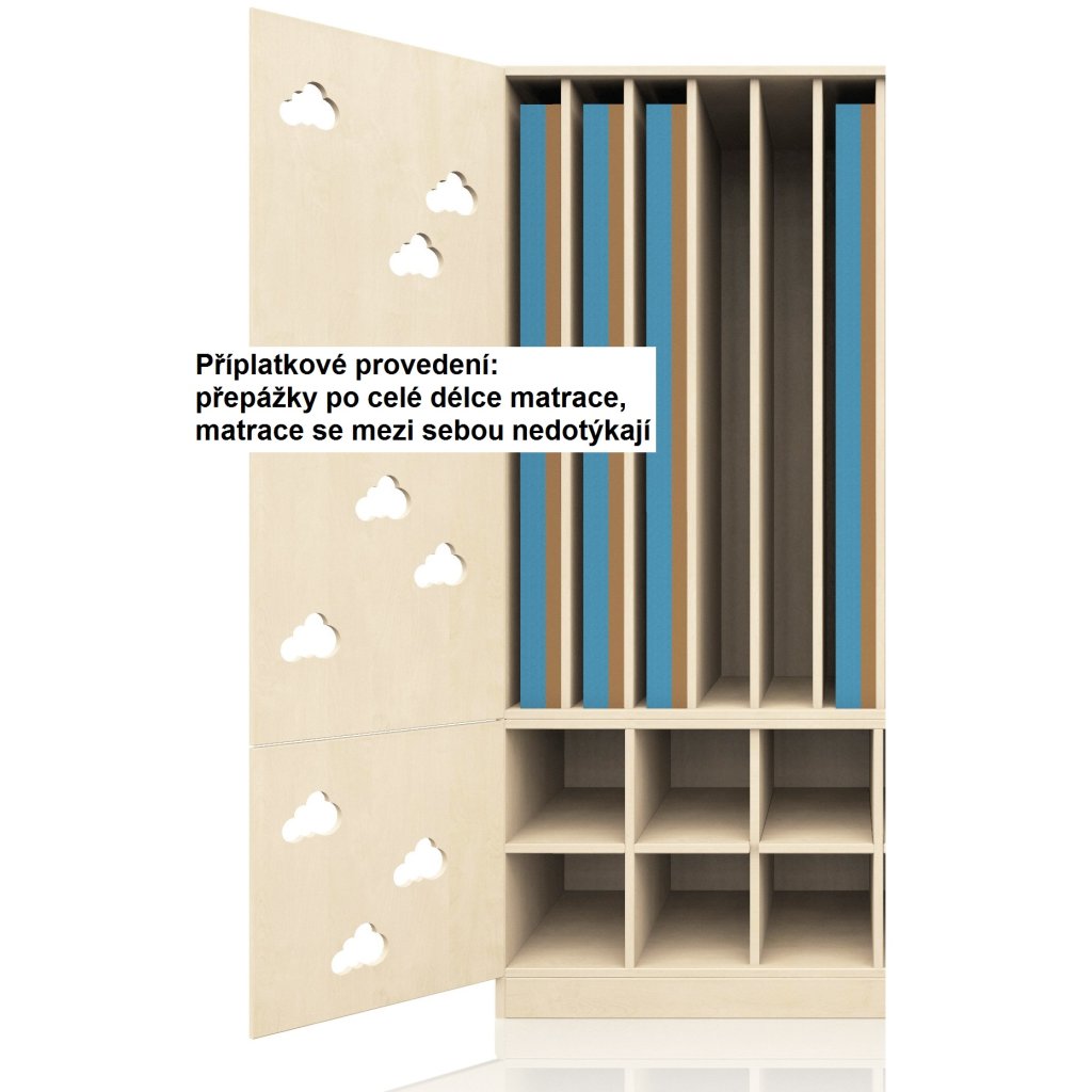 • Příplatkové provedení: přepážky po celé délce matrace - matrace se nedotýkají